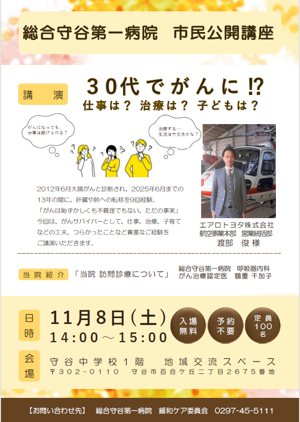 1.講 演:30代でがんに⁉ 仕事は? 治療は? 子どもは?