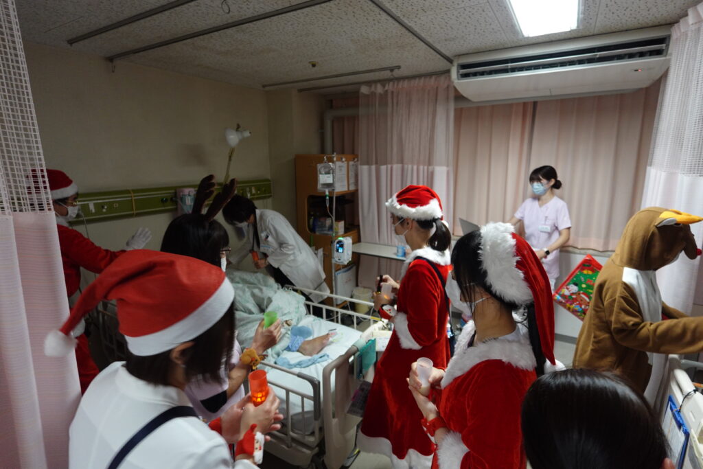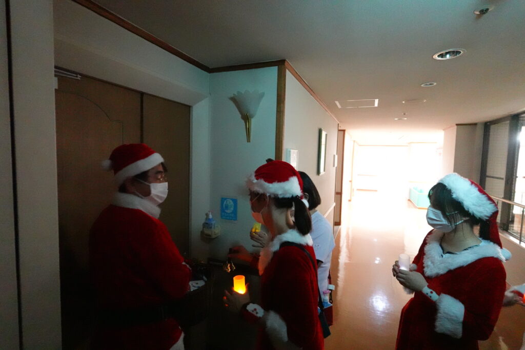 夜の部では、各病棟をサンタさんとトナカイさんが順番に訪問いたしました。
